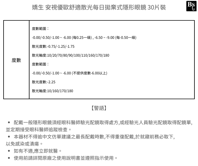 【請詳閱度數範圍】