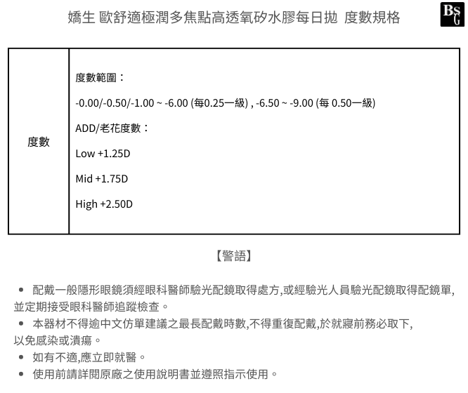 【請詳閱度數範圍】