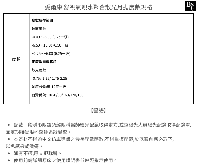 【請詳閱度數範圍】
