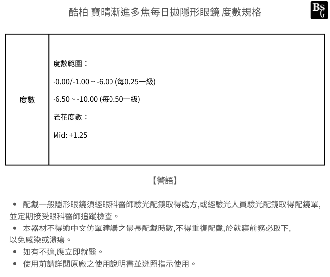【請詳閱度數範圍】